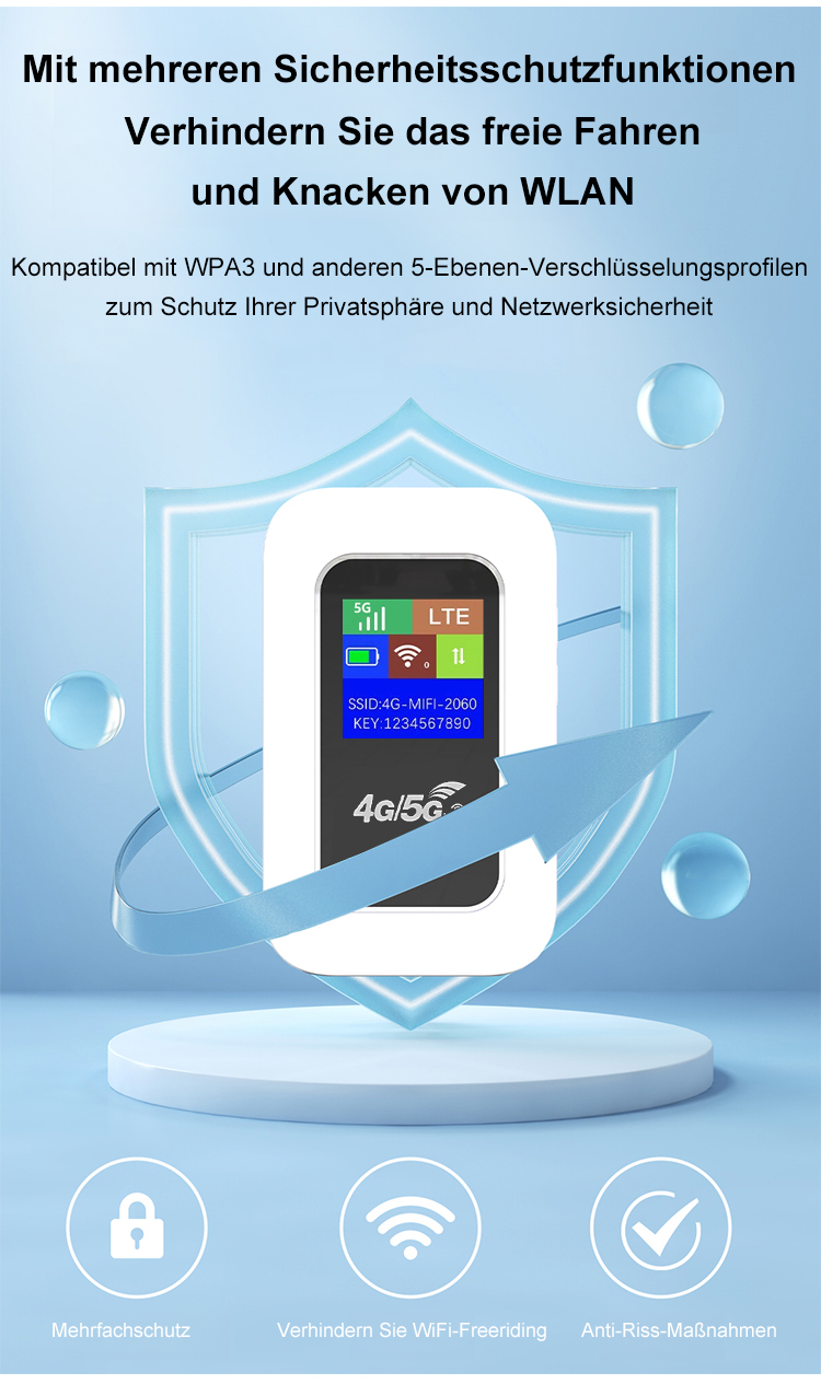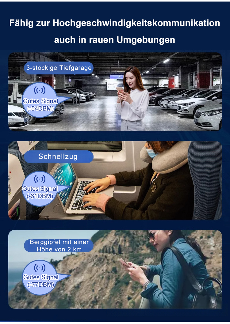 Keine SIM-Karte, kein Vertrag und keine monatliche Miete erforderlich, lebenslang kostenlos, 10.000-mAh-Akku mit 100 Stunden Laufzeit, Anschlussmöglichkeit für 100 Geräte, Reichweite 150 Meter.